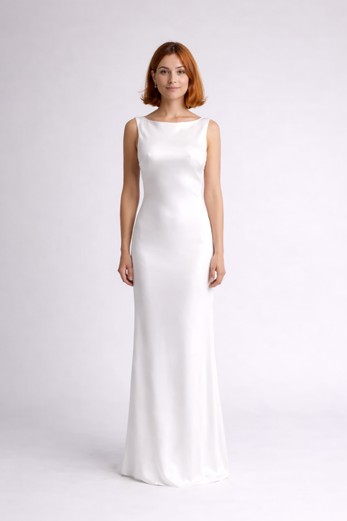 Une robe minimaliste, féminine et intemporelle, pensée pour les mariées qui aiment la simplicité maîtrisée.